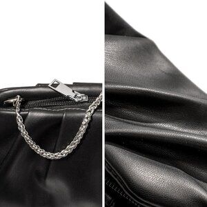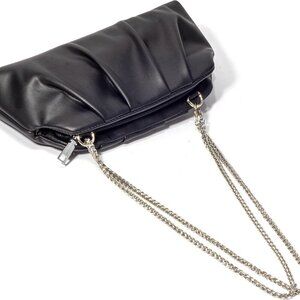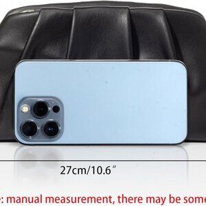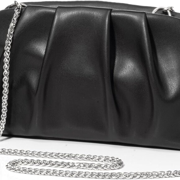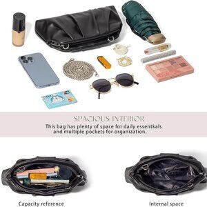 Features: A compact, chic evening bag made from wrinkled vegan leather. Includes a delicate chain that lets you carry it on your shoulder, in hand, or cross-body. Sized at 10.8 x 5.3 x 1.7 inches, it’s perfect for holding essentials like your phone, cards, keys, and a few makeup items. Its streamlined design makes it ideal for events like dinner parties, weddings, dances, or date nights, offering both practicality and style.