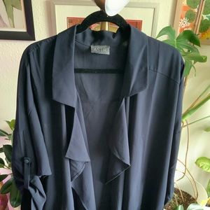 Lightweight Navy jacket. Perfect with a tank and jeans, this light jacket is ready for a new home! Size large but fits a bit oversized and flows.