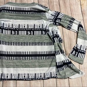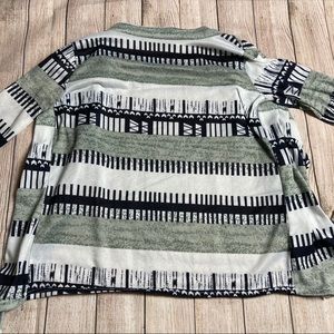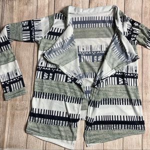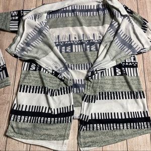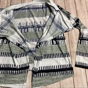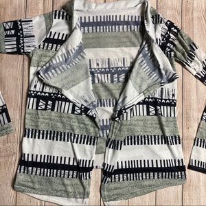 Lightweight patterned black/grey/white cardigan. No button closures. Cute and soft, great for spring!
