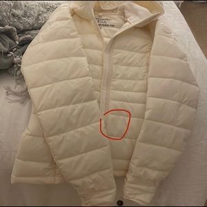 @haileytingzon hi sorry for the late reply. There is a stain in the front as shown in picture. Let me know if you want more picture. Otherwise it’s in great condition. I worn it once to Seattle