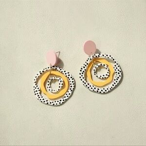 Lightweight Retro Acrylic Dangle Earrings Pink Yellow Black polka dots