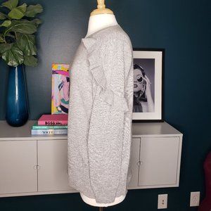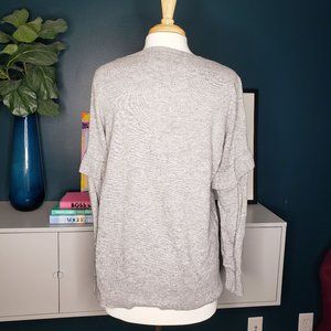Great basic with some style. This is a unique piece that gets lots of compliments whenever it's worn. Lightweight heather gray sweater.