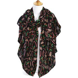 Unique Style: Featuring festive Christmas trees, candy canes, and poinsettias, this scarf adds a touch of charm and glamour to any holiday outfit.