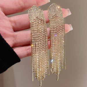 Rhinestone Shimmer Fringe Earrings for Party Wedding Prom Pageant Occasion