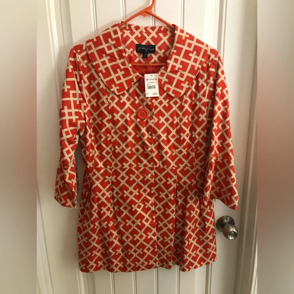 NWT Light weight jacket. Khaki and Dark orange. Fit and flair. By Versona. Perfect for the Spring for in the office or a night out on the weekends.