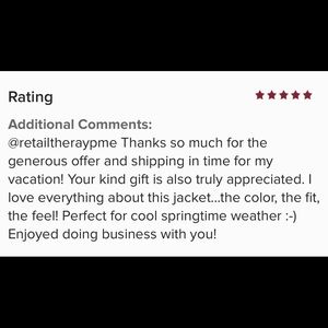 @michelleauriana you are very welcome thank you!! You will love this jacket!!!!!