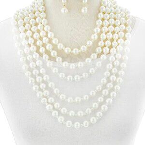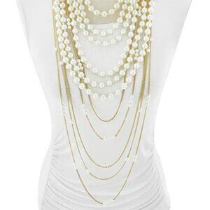 Lightweight Statement Multi Layered Strands of Faux Pearls in Gold Tone Necklace