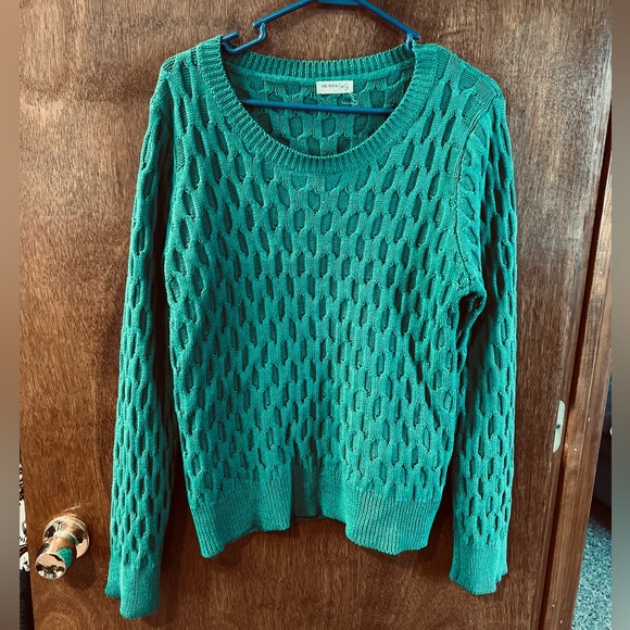Kelly Green lightweight sweater; size XL and only worn once. Looks really cute with a pearl snap underneath as well! Bust is 44” length 22.5”- I felt like it ran small.