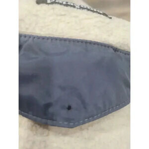 In good condition, size large. The top part of the snap button is missing but the flap stays closed.