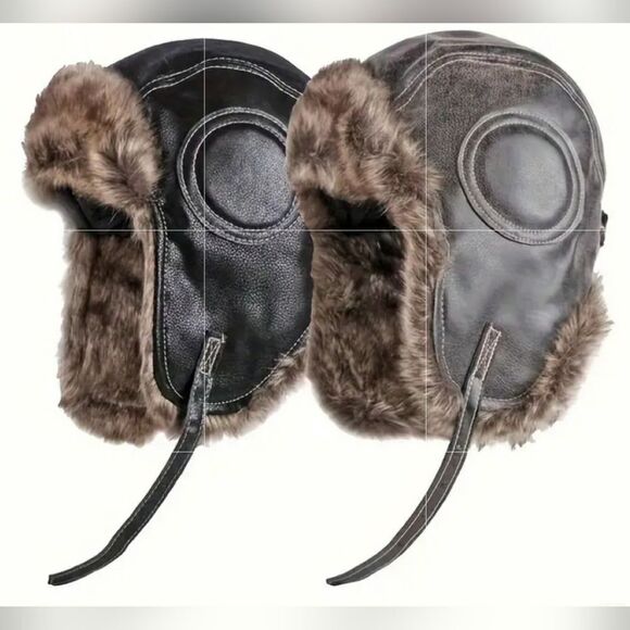 Lightweight Thickened Faux Leather Bomber Hat Catcher Hat Pilot Hat Trappers Hat