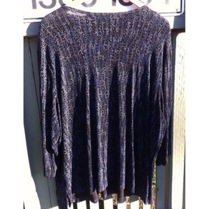 Branded "CM Shapes", size 3x, this v-neck top in lightweight, stretchy fabric is 94% acetate, 6% spandex and comparable to Vikki Vi. Sleeves are mid-length, no wrinkle fabric. Flattering color and pattern falls light & airy but is still professional enough for work. 🌺