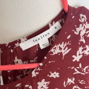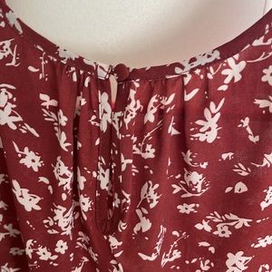 Lightweight top, gorgeous, rich dark pumpkin color, shirring at neckline and button detail at nape.