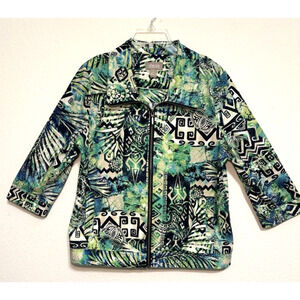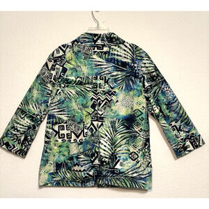 Lightweight Tropical Zip-Up Jacket CHICOs Size 1 (Large) Green Abstract Pattern