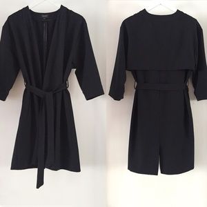 Black Lightweight Duster/Utility Jacket with belt and two front pockets. From Topshop (only worn a couple of times, a lovely jacket but I'm moving overseas and need to edit). Perfect condition. Great spring layering piece. Size 4 but would fit sizes 2/6 due to wraparound style.