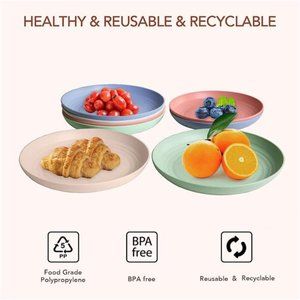 🧿❤Made of natural wheat straw, starch and food-safe PP material. BPA FREE, totally non-toxin, safe and healthy for your family. Perfect plates for snack, salad, noodle, pasta. Ideal gift for Christmas, Birthday, Housewarming, Thanksgiving and Mother’s day etc.