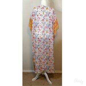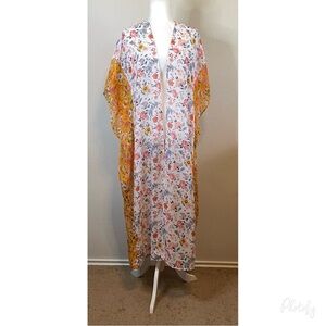 Lightweight Yellow White Floral Longline Sheer Kimono Duster Wrap Boho Cover Up