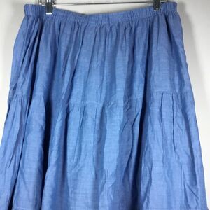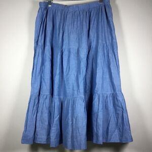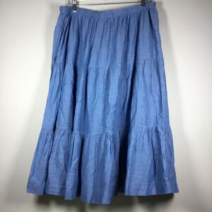 Lightweight blue denim cotton skirt drawstring waist wood beads elastic waist L