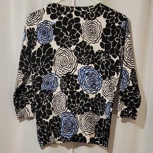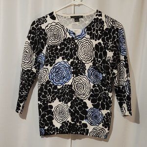 Lightweight button down sweater. Floral print, 3/4 sleeves. Great condition. No rips, stains or tears. No missing buttons. From a smoke free and pet free home.
