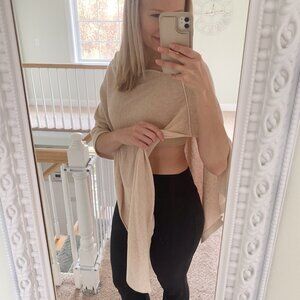 Lightweight cotton cashmere nursing cover shawl cocoon poncho in Oatmeal/Natural