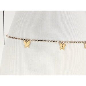 Lightweight crystal rhinestone butterfly skinny gold metal hip chain charm belt