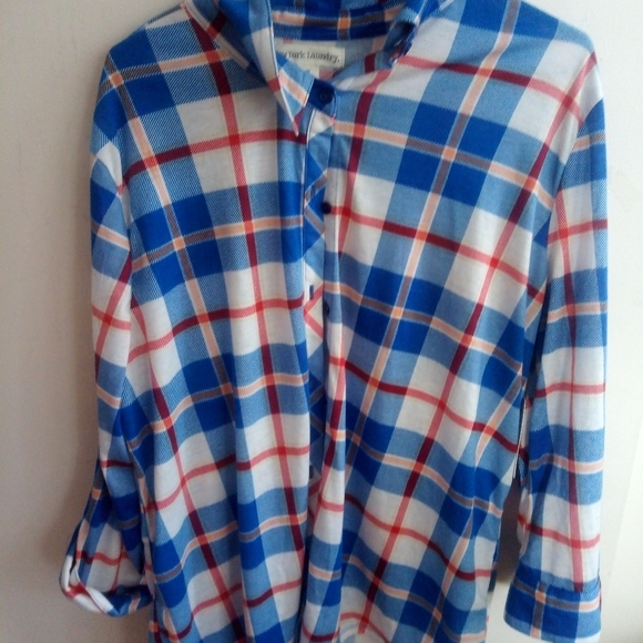 It's a brand new, never been worn red, white, and blue flannel. It's super soft and light-weight, perfect for warm weather. It's 3/4 sleeve and has buckles on them. It's a 2X and super comfortable.
