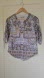 Very lightweight and flowy, this super comfortable blouse has an abstract floral and geometric pattern with small rhinestone accents at the shoulders.