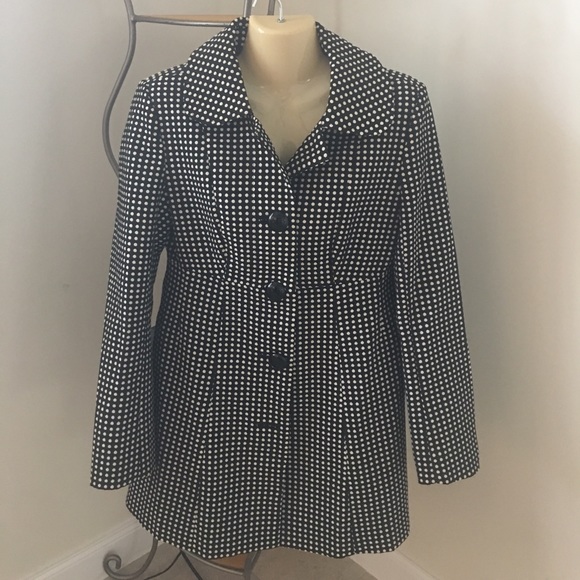 Black with white dots. Lined. Worn only a couple of times. Really cute paired with a red turtleneck.