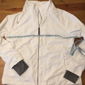 GUC light weight with mesh vent in back, thumb holes and sleeve cuffs, toggles at neck and bottom of jacket to adjust fit. Vent that zips on right shoulder to neck. Pit to pit about 22 in, top of shoulder to bottom hem 24 in. Smoke free home bundle to save more.