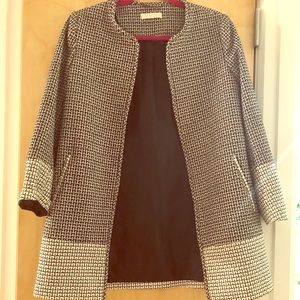 H and M topcoat. Lined, does NOT button (not broken, just not designed to). Size tag no longer on item but would fit S/M. White with black stitching