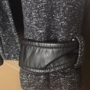 Cute lightweight jacket with fleece lining. Has faux leather at the end of the sleeves and around the collar. The tie around the waist is to make for a perfect fit. So cute!!! Only worn once. Size small. Smoke free home. Happy shopping 😊