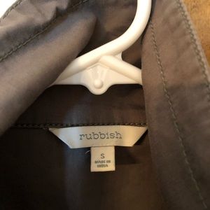 Lightweight jacket with shorter sleeves and snap and zip closure.