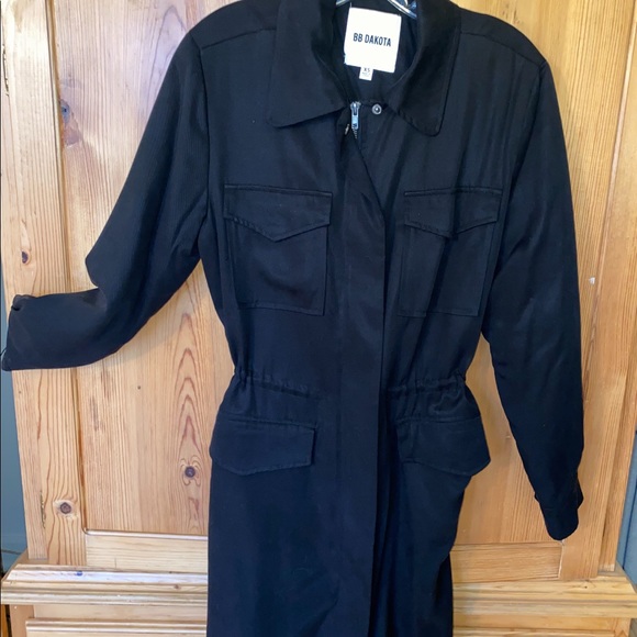Black light weight jacket with drawstring waist & fill zipper.