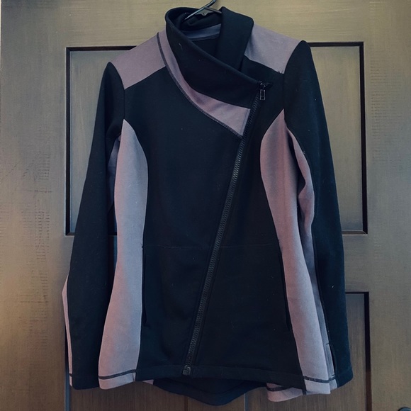 Cabi light weight jacket. Has a lot of stretch to it and hugs in all the right places! The asymmetric zipper adds some fun to this classy look!