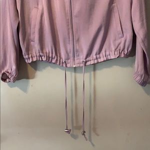 Silk Lightweight jacket with pockets. Like a lavender color. Sinched adjustable bottom
