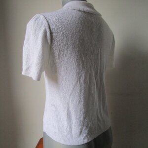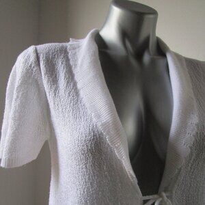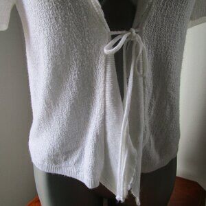 White short sleeve sweater coverup. Open front with string tie. JasonMawell Size M.