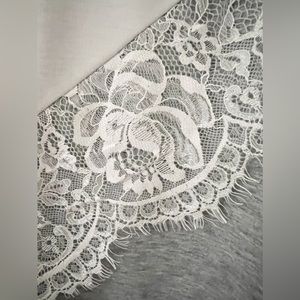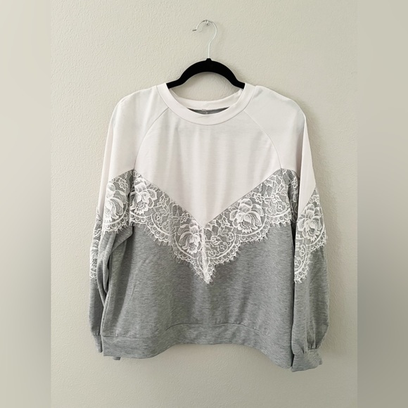 Lightweight crew neck pullover with lace detail, size large