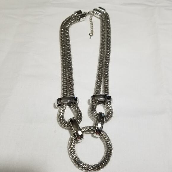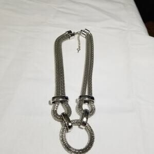 Lightweight silvertone necklace fifteen inches with a one and one half inch pendant