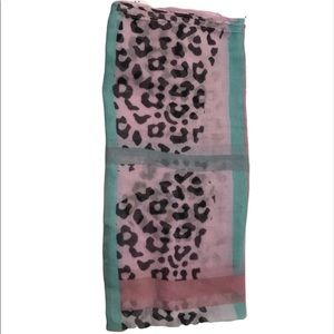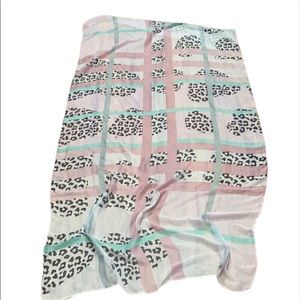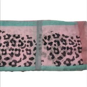 Beautiful lightweight woven Cotten scarf. Approximately 65x34”. Leopard print with light pink and mint coloring