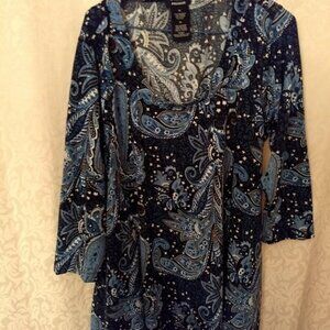 Gently used lightweight sweater with no rips, stains or flaws. Great for work or casual wear. Poly/spandex. Machine wash.