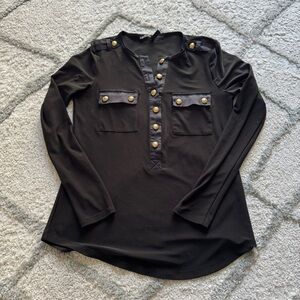 White House black market black long sleeve top with gold buttons XXS but is oversized
