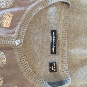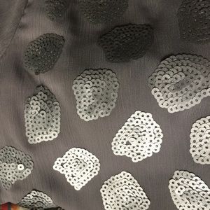 Let grey cotton sweater with front sheer fabric that has silver decorations sewn on front. Like new. Size L