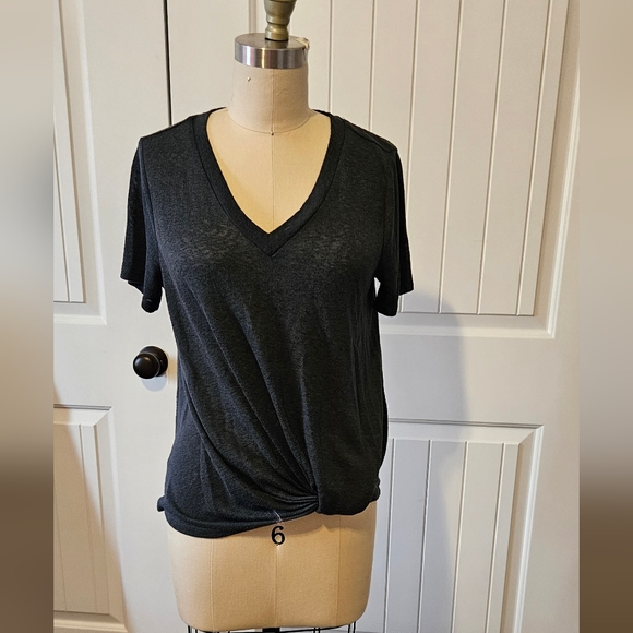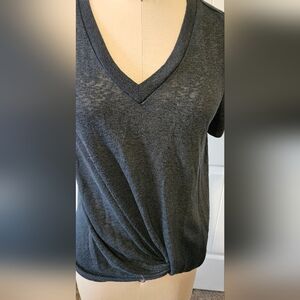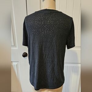 Very nice top. In great condition, no holes or stains. Linen/cotton/poly blend. Easy to care for.
