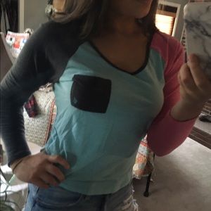 Super lightweight VOLCOM tri-color tee. Can be dressed up or dressed down very easily. Great for summer, but can be transitioned into winter as well. Only worn once other than for the picture purposes.