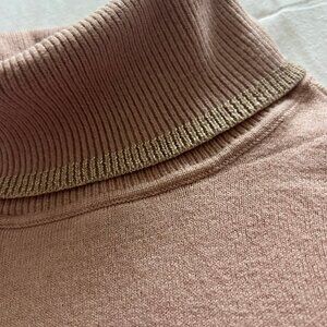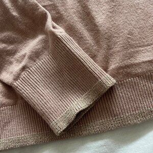 Dusty pink and lightweight. Pretty cuff and neck detail in golden thread