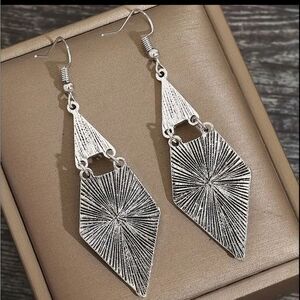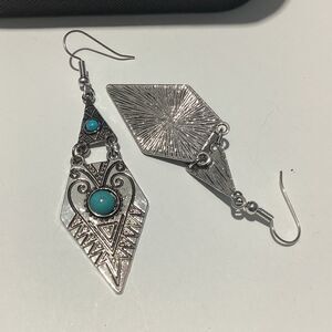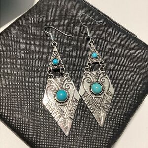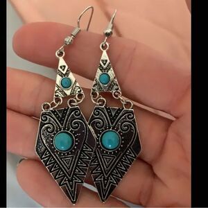 🪷Lightweight SilverTone Turquoise Boho Hook Drop Earrings