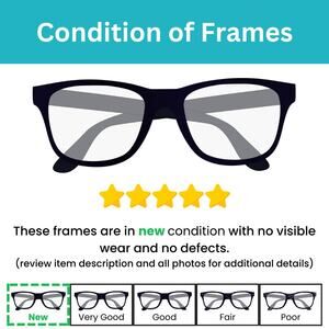 CONDITION OF FRAMES: These eyeglass frames are NEW and have never been used. There is no visible wear and no defects.
