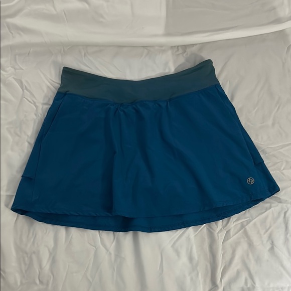 This vibrant blue skater skirt by Lija is designed for athletic and casual settings, featuring a mini length and a flared silhouette for added movement. Crafted from performance athletic material, it ensures comfort and style during your activities. The skirt's elastic waistband provides a secure fit, making it a versatile choice for both workouts and everyday wear.