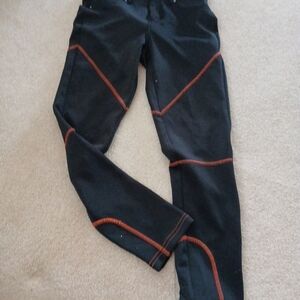 This pair of Like An Angel girl's pants is perfect for any season. The black color and ancle style make them versatile and easy to pair with any outfit. The slim fit and belted waistband with an elastic back provide a comfortable and flattering fit.The red top stitching adds to their appeal. The lightweight polyester spandex fabric and pockets make them perfect for everyday wear.