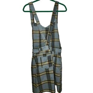 Like An Angel Plaid Overall Dress Women's Extra Large Blue Yellow Casual