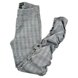 Like An Angel Women's Gray Plaid Moto-Style Skinny Pants XL